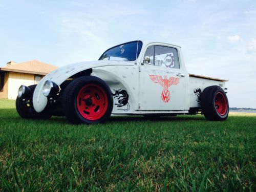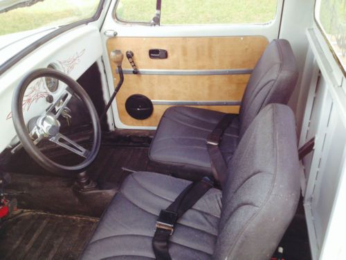 WHAT A GREAT WAY TO ADVERVISE YOUR BUSINESS OR JUST PLAIN FUN TO DRIVE, IT GETS ALOT OF ATTENTION. BODY: 1974 BODY WITH 1967 SINGLE CAB ROOF SECTION (NARROWED), HAND MADE LOWER REAR CAB AND BED. 1967 HOOD, NEW WINDSHIELD, CUSTOM DASH, WOOD SLAT BED. A LOT OF WORK WENT INTO THE BODY ENGINE: MISCELLANEOUS: WILL GLADLY HELP WITH SHIPPING ARANGEMENTS IF NEEDED. THANKS FOR LOOKING AND GOD BLESS : ) On Apr-29-14 at 09:15:53 PDT, seller added the following information: WHAT A GREAT WAY TO ADVERTISE YOUR BUSINESS I OWN GPI SIGNS AND AUTOMOTIVE GRAPHICS SO I WILL PUT YOUR WORK WENT INTO THE BODY.BUSINESS LOGO OR WHATEVER YOU WANT ON THE BACK WINDOW IF THE RESERVE PRICE IS MET CHASSIS 1969, TITLE MATCHES PAN NUMBERS. 1967 SWINGAXLE TRANS, 1967 STOCK WIDTH ADJ. BEAM, VOLKSROD SHOP 10" BEAM EXTENSION AND FRAMHEAD BRACE, EXTENDED STEERING COLUMN. 14 AND 15 INCH SLOT MAGS WITH GOOD TIRES. NEW BRAKE SHOES, LINES WHEEL CYLINDERS AND AIR BAGS (GAUGES AND CONTROLS INSIDE THE CAB, AIR COMPRESSOR AND TANK INSIDE THE BED). BODY: 1974 BODY WITH 1967 SINGLE CAB ROOF SECTION (NARROWED), HAND MADE LOWER REAR CAB AND BED. 1967 HOOD, NEW WINDSHIELD, CUSTOM DASH, WOOD SLAT BED. A LOT OF ENGINE: NEWLY REBUILT (LESS THAN 1000 MILES) 1600CC ENGINE (CYL. .010, CASE .050, THRUST .010, STANDARD CRANK) RUNS AND DRIVES GOOD, NEW WIRING HARNESS.