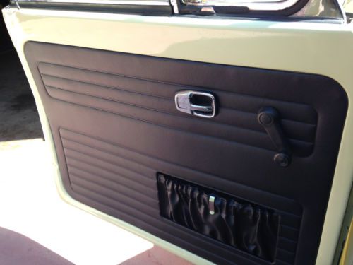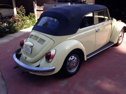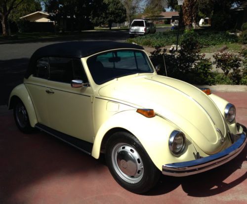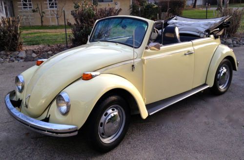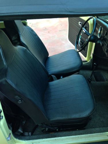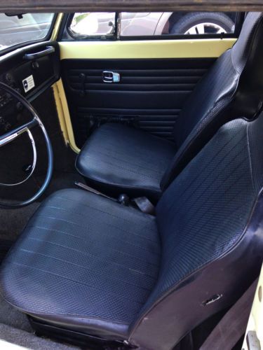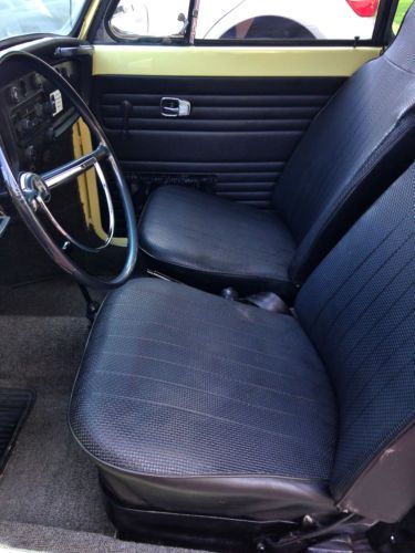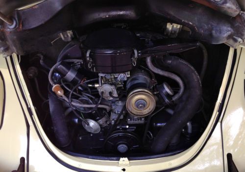 New paint, stock VW Bug yellow. Looks great! New rebuilt engine with about 200 miles on it, runs great! Trans shifts perfectly. Interior is in very good shape. Any flaws you will see in pictures. New door panels. Top is solid, with a few small dings, see pictures. Headliner has a rip at the back seam, taped over at the moment, but could more than likely be sewn together. Carpet is in decent shape. Tires are good, one tire needs to be changed. The new tire is in the trunk. Needs a spare wheel. Needs speedometer cable and also a new blinker switch. I put in a new flasher switch ($39.00) thinking that would get the blinkers going, but they still don't work, must be switch on column??? Needs visors. Overall this is a really nice restoration that just needs some finishing details. Great mileage. The car looks really, really good! We are moving soon so the car has to go. Car is also being sold locally so ad may end if sold locally.