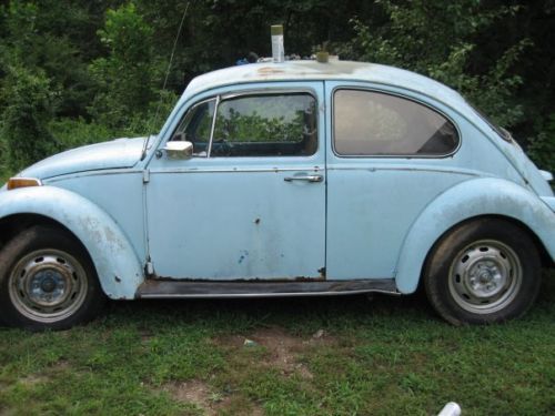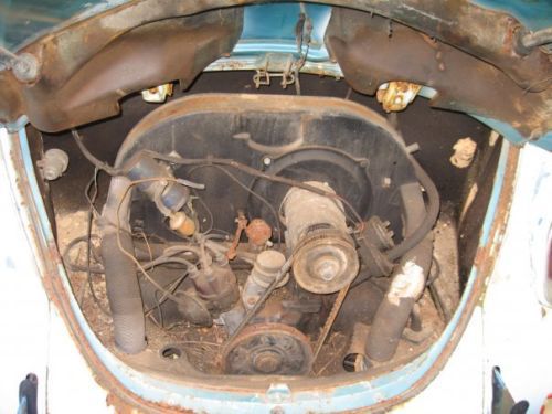 This Bug could be restored with lots of work or could be used as a parts car. The body is solid with some surface rust. The floor pans are gone. All the glass is good. Seats are really bad on the material. I have 4 tires that go with it besides the ones on it. The car has not been cranked in 10 years. Will have to be picked up here. Please, if you bid make sure you want the car. This is the third time I have listed the bug, and I got burned on both bids. Thank you.