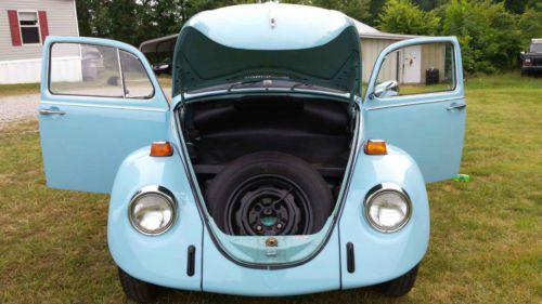 This is a very nice and clean 72 vw standard.Everything on this car works even dome light. Car was repainted back to factory color about 6 years ago with all new rubber around windows and doors inside of door jams under hood and deck lid is factory paint.The car runs and drives great. As you can tell by the picture of the floor pan if you know vws how solid the car is. The car itself has 62000 miles . Motor runs great as does the trans shifts. .Any questions or need more pics email or call 270 816 2526 Thanks Mike. I do hae the bumpers they are in very nice shape. I just prefer the look with out them. |