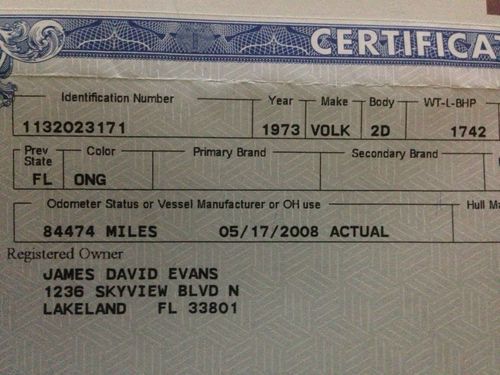 Up forsale is my 1973 Volkswagen Beetle that has been restored; the car runs and drives perfect just had a new carburetor installed, Also a brand new set of tires were installed. The car entirely is in near perfect condition excluding the 2 spots of minor surface rust. the interior is completely new , with an after market radio , and speakers for better audio. the car currently has 86,136 ACTUAL MILES. The car is beautiful inside and out and anybody that comes and sees it will fall in love .THIS CAR IS STUNNING. There is no reserve set on the car so it will be sold to the highest bidder. Dont miss out on this one of a kind. For further questions and concerns just contact me thru messsage its connected to my phone so i usually respond immediatly. The vecicle will be sold as is where is to the highest bidder.