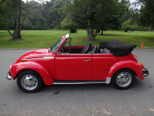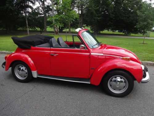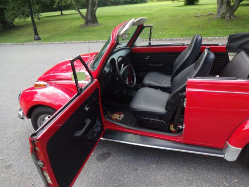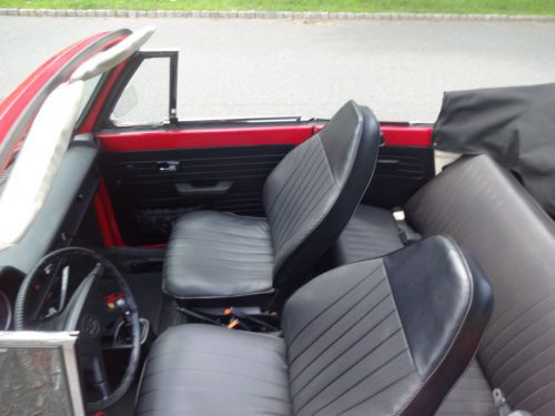 NO RUST NO ROT!!!!!! 1973 vw beetle convertible under 50k original miles 4 speed manual trans 1.6l air cooled 4 cylinder carborated engine i spent a long time looking for a car this clean its most likely the cleanest one on ebay i paid $12500 for this car from a private seller and looking at the others on ebay i should have no problem getting my money back either way it has to go very very minor flaws a couple of small scratches that look like they can be buffed out a tiny crack on the dash and a small tear about a quarter of an inch long on the driver seat and thats it car looks like it was repainted a couple of years back a very clean job and theres no way the top is original but thats mint no rips no tears its got a glass rear window if you have any additional questions please call me walter 9732207577 the car is also up for local sale i have the right to end this auction at any time if you are a serious buyer please call me to see the car