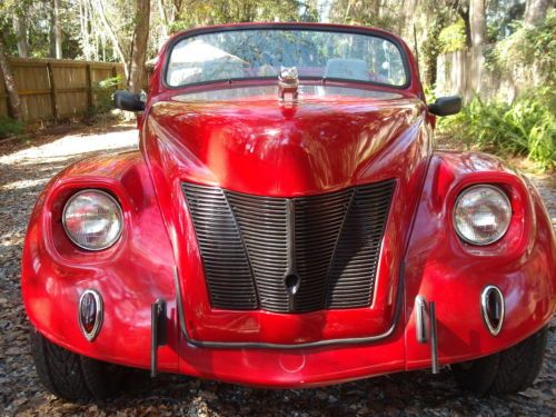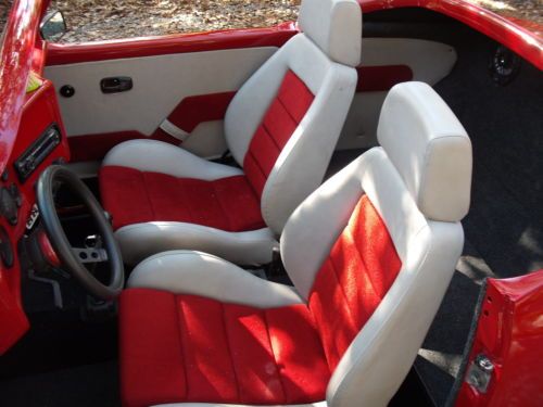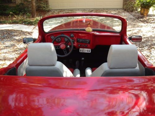 Custom front to back; one of a kind. Mack truck hood ornament(bull dog). The first picture is to show "hubcap"/mag different look. Has full mag rims that were painted black on the fronts by previous owner as all other pictures show (paint can be removed). Not just a cruiser, but deserves a VW magazine front page. Offers will be made to buy this at every meet or beach hang-out you go to. I choose to sell it via this Ebay & Craigslist, but if I wanted to spend the time going to, and hanging at VW club/car meets, it would not be a problem selling at my price. There is no back seat or top (I'm sure one can be installed even if a roll bar is part of the plan; even small buckets/jump seats may be adaptable). All carpeted with nice two fold middle split cover over battery & other floor well. Starts & runs good. No oil smoke; hardly any dripping. Clutch & shifting good. Two rear speakers. Compare with dune buggys on Ebay. My price is real close to upper end dunes. And, do you really want an "A-typical" dune clone? Ya seen one dune, seen them all. A roll bar in my VW can adapt a bimini or similar sunshade targa, & work for surfboard, beach equip, etc. cool carry. ALL NEW items: floor pan, wiring, brake parts, *front disc brakes, axle dust boots & bearings, shocks(rear have adjustable springs), front end parts, stainless trim pieces on running boards, $800 in Kumho tires, chrome lug nuts with locking one on each wheel (key to locking lugs is stored in engine compartment which locks), and so on. The battery is not very old. Also includes a 100% waterproof elastic cornered, & vented storage cover (for event outside parking, etc.; it does keep car dry). NEEDS SEAT BELTS. CLEAR TITLE/VEHICLE ID#. THE LAST PICTURE IS WITH HUBCAP ALTERNATIVE . *****LOCKING STEERING WHEEL, WHEEL LUGS, & ENGINE HATCH. ELECTRICAL CUT-OFF SWITCH TO ALL CAR FEEDS BEHIND PASSENGER SEAT********* ****** ***** ************* **************** * WILL ALWAYS ::::: BEACH HIGH TEN . * BEST BUSINESS PROMOTION ATTENTION GETTER. * GEORGIA BULLDOG TAILGATER THEME & COLOR. * WOULD LOOK EVEN BETTER WITH A CUSTOM ROLL BAR/SNAP-ON CANVAS BIMINI (THIS WOULD RAISE VALUE // EVEN BETTER LOOK FOR SURE). I MAY BE PAINTING THE GRILL "CHROME" AT SOME POINT & INSTALLING NEON LIGHT EFFECTS IN GRILL GROOVES/UNDER RUNNING BOARDS (LOOKS LIKE THE GRILL WAS SILVER & PAINTED BLACK). ^^^^^^^^*****THIS WILL PROBABLY BE MY LAST EBAY LISTING FOR AWHILE. THINKING ABOUT TAKING TO THE SPRING TURKEY ROD RUN IN DAYTONA & LOCAL VW MEETS/CLUB EVENTS.