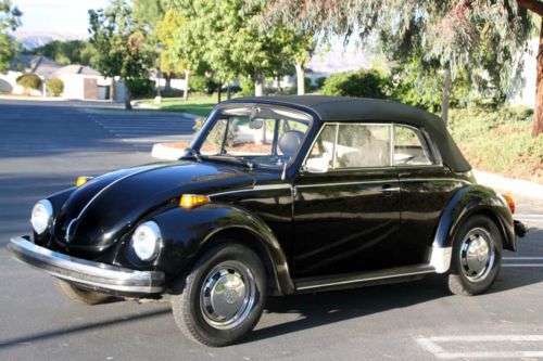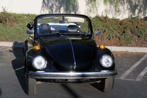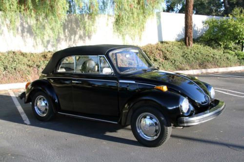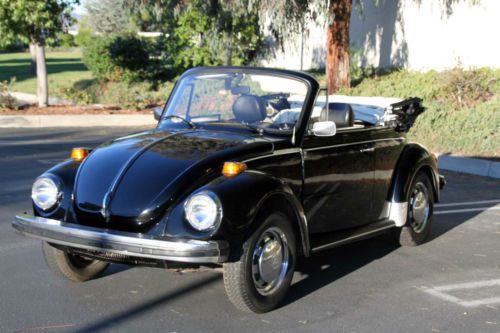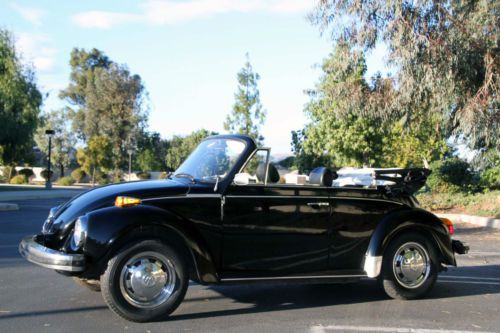 For Sale 1979 Volkswagen Super Beetle Convertible, *** TRIPLE BLACK *** California Car This was the last year for the old style convertible bugs.This car has been covered and stored in a climate controlled garage for over 20 years!! When it came out of storage we replaced the fuel lines, cleaned the tank, replaced the fuel pump, plugs, changed the oil and it fired right up. Runs great!! The car is fuel injected. I have the original steering wheel. We replaced the top with new. The interior is in excellent original condition with no rips or tears in the seats, headliner was replaced before it went into storage is white and looks perfect. Car does need new tires, front bumper has a few spots in chrome and there is a scratch on right rear behind door. Please email with any questions. Car is sold as is. Buyer is responsible for pick up or shipping. $1,000.00 Deposit via Pay pal within 48hrs of auction close, Balance in Cashiers check 7 days after auction close. |