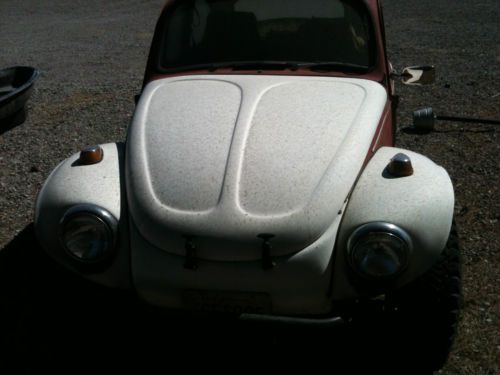 This posting is for a 1968 VW Baja beetle. This Beetle runs, drives. The autostick transmission works great. There is some rust on the car. I didnt see anything rusted trough though. the floor pan under the battery looks good. all of the seats are there just in rough shape. It does need some cleaning up. So it would be good to bring a tow truck or a trailer. This has been sitting in my storage yard or a while. the tires have air but they are dry rotted. I put new gas in it it idles nice. I set the timing in it. The oil is good. This has had the fiberglass kit put on it. The rear engine part has been caged in and the rear section of the car has been cut out. This has had a ton of stuff done to it but it has been sitting for a while and need some love to go have some fun in it. This is by no means a piece of junk this is a great car. My friend had it fixed up for his daughter to drive but she didnt like it so it has just sat for a while. Now it is time to get it to someone that will take care of it and be able to enjoy it. I will post some pictures of it. I have sold a couple cars on here and motors and stuff. I like to think I am pretty mechanical and I have never had anyone complain because I do my absolute best to check everything over and make sure I list all if any issues with my items especially a big purchase like a car. This has a clean and clear pink slip. Please feel free to email me with any questions. Like I said I will post some pictures of this to go with the video but the video pretty much tells the story. Thank you for looking and happy bidding.
