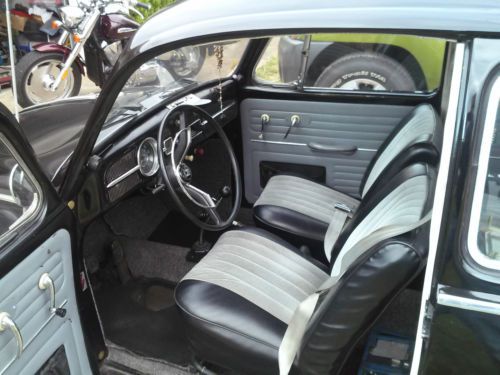 On May-02-14 at 14:49:40 PDT, seller added the following information: Good condition, daily driven bug. Converted to 12 volts, including all lights and 67 wiper motor with 2 speeds. I have owned for the last 11 years, and daily drive it for 9. Everything works including the heater, lights, radio. All new interior installed 6 years ago all in good condition including pop out windows. NO RUST, NO BONDO, all original panels, paint was removed 5 years ago and repainted Black on the outside only (original paint on inside). Lowered with spindles in the front and torsion bars adjusted in rear. Porsche disk brakes in front and new drum rear brakes. Motor rebuilt 1 year ago, new 87 jugs, new 34 pic carb, rebuilt heads, header. Ready to drive. |