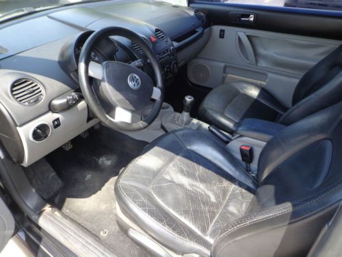2004 Volkswagen Beetle 2.0 Turbo with 5 speed manual transmission. Car starts but engine runs rough mechanic states turbo is bad. Car starts up but smokes. Has around 180k. Leather, MoonRoof and rear spoiler. Body in decent condition few scratches needs driver headlight replaced. Interior still decent needs cleaned. Clean title. Car would make good project car or great for parts.