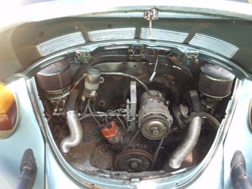 NEW DUAL CARBS NEW BRAKES NEW TIRES NEW BATTERY NEW TOP This is the last year made, Champagne Blue 65.000 miles on odometer, which works. The under body and floors are solid Tight and quiet, nice to drive. Perfect for a daily driver, No problems. Has been repainted. There is paint chipping at some edges which has been touched up. The engine has been just freshly gone through, rebuilt. less than 200 miles since then It is a 1600 carburetor engine, all stock, except dual carbs for more power The engine had to be rebuilt because water got inside it. The problem has been corrected. 4 speed trans in good order, no problems There is the optional clock in dash, which works All windows are operable. work fine The convertible top is vinyl. It also has the original glass rear window. The wheels are the original VW sport wheels with new tires. The front seats are also original with no tears. The interior panels are great. Owned by a professional VW mechanic that drove it, maintained and keeps everything working. |
