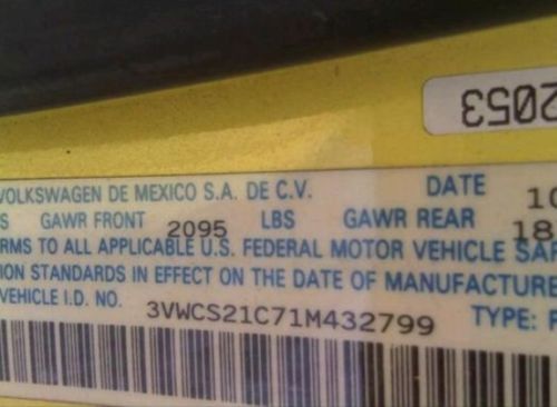 2001, New Beetle Volkswagen, Yellow, Automatic, 75,000 Miles on 2040-cars