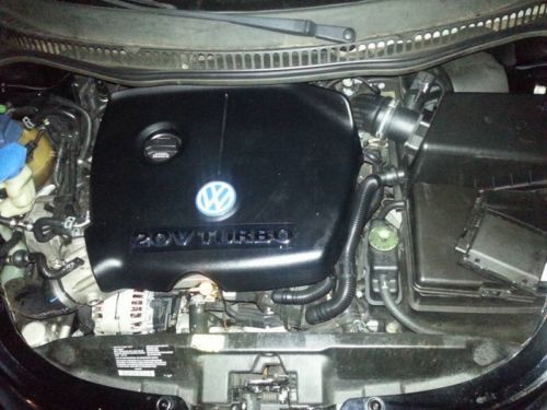 This auction is for my 2002 Volkswagen Beetle Bug 1.8 liter turbo 5 speed ,power windows, power locks ,tilt ,air condition, power sunroof and heated leather seats. I purchased the car a few months ago with full intentions of it being my daily driver since then I have installed a new battery, new starter ,new alternator ,new timing belt, new water pump ,new shocks,new struts, new brakes ,new fuel pump, and a full set of tires all within the last 1000 miles. I have only used all top quality products with my intention of keeping the car since then I realized it's just too small for me and my family. the leather seats are in good shape only a few minor marks and one small tear in the drivers left side all seen in the picture. The body is in great shape for a 12 year old car only a few minor door dings and one small dent in the lower right side molding as pictured. The clear is slightly peeling in some areas but overall the paint shines up very well.The wheels have been coated with a spray on plastic rubber compound and can be removed very easily to see the factory silver wheels if desired. the only thing that doesn't work is the cruise control could be something minor just haven't looked into it yet. The door panels have cracked like most all beetles you find and I have installed the replacement handles as seen in the pictures. The motor runs very strong ,turbo builds great boost, no squeaks or rattles. I encourage any local buyers to come by and take it for a test drive it handles very well feels nice and tight. I really hate to sell it after putting so much into it but I had to get a bigger car and just don't have room for two.You will be very impressed it is an absolute joy to drive a 5 speed turbo car. please call or email me my phone number is 805 404 1427 if you have any questions or would like more pictures please reach out to me thank you and good luck