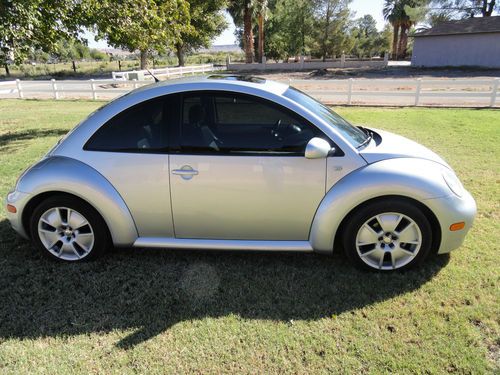 2003 Silver VW Turbo Bug Six Speed S with Manual Transmission. Two-Tone Leather Seats. Heated Seats. A/C Blows Ice Cold Air. Power Windows - Locks - Mirrors. Cruise Control. AM - FM - CD 6 Disc CD Changer . Front and Side Air Bags. Everything Works and the Car Runs Great. Preferred Auto Sales is a Small Family Owned Business for more than 22 Years. Call us at . . . 1-702-649-7777 . .