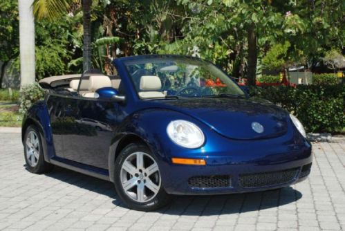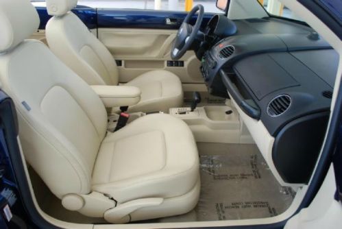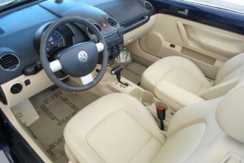 2006 Volkswagon New Beetle 2.5L 5 cyl. 6 Speed Automatic with sport shift. Only 76304 miles, Exterior Blue Metallic, Cream Canvas Top, Cream Interior. Upgraded 10 speaker AM/FM,In-Dash CD, MP3 Monsoon Audio System, Auxiliary MP3 Audio Input! Tilt & Telescopic Steering Wheel, Cruise Control. Power Convertible Soft Top, Heated Seats, Heated Exterior Side Mirrors w/ Turn Signal Indicators. Four Wheel Anti-Lock Disc Brakes, Stability Control, Traction Control, Side Air Bags, Wind Deflector Behind Seats, Alloy Wheels