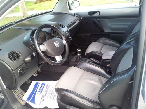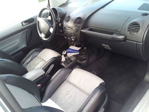 THIS BEETLE HAS TWO TONE LEATHER SPORT AND BUCKET SEATS WHICH ARE IN REAL GOOD SHAPE NO RIPS NO CRACKES NORMAL USAGE IS THERE.ALL POWER OPTIONS WORK FINE.IT HAS CLEAN HEADLINER.IT HAS NICE MOONSON SOUND SYSTEM WITH CD OPTION.