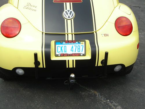 YOU ARE LOOKING AT MY 2000 BEETLE IT ONLY HAS 73,500 MILES ON IT AND IT IS A 5 SPEED MAN. TRANS. ICE COLD AIR ,heated seats POWER WINDOWS AND LOCKS and mirrors WITH KEY FOB. REMOTE TRUNK LOCK FACTORY SECURITY SYSTEM AT.. 60K NEW VW RIMS FRONT AND REAR BRAKES AND ROTORS IT HAD ALL NEW TURBO AND THE INTAKE CLEANED AND NEW CONTI. TIMING BELT WATER PUMP AND ALL IDLERS AND SERPTINE BELT ALSO GLOW PLUGS GOOD FOR ANOTHER 100,000 MILES CUSTOM BUMPERS FRONT AND REAR.. FOG /DRIVING LIGHTS AND TWO INCH LIFT KIT. PROFESSIONALLY INSTALLED AND GAGE PACK ON DASH BOOST EXT. TEMP AND WATER TEMP WITH BLUE LIGHTING LOWER BLACK OUT IS BASE COAT/CLEAR AND UPPER IS 3M VINAL STRIP KIT INSIDE DOORS AND SIDE PANELS ALL 3M CARBON FIBER RAP .AT 72,000 MILES NEW FRONT STRUTS. MOUNTS AND VR6 SPRINGS THIS CAR DRIVES GREAT A LITTLE STIFFER THEN STOCK BUT HANDLES GREAT NO BODY LEAN. SET UP FOR TOWING BEHIND MOTOR HOME COMES WITH TOW BAR AND WIRING READY TO GO .IF YOU HIT THE BUY NOW I WILL INCLUDE ROSS TECH.HEX+CAN VCDS SCAN TOOL AND THE 16 FOOT CABLE THIS WAS A 400.00 DOLLAR TOOL THAT I BOUGHT 6/12 P.S TIRES ARE GOODYEAR ASSURANCE 225/50/R16 GOOD TREAD BUT SHOWING SOME AGE AND IT DOES HAVE A LITE HITCH AND IS WIRED FOR A SMALL TRAILER also