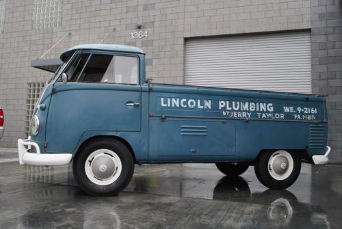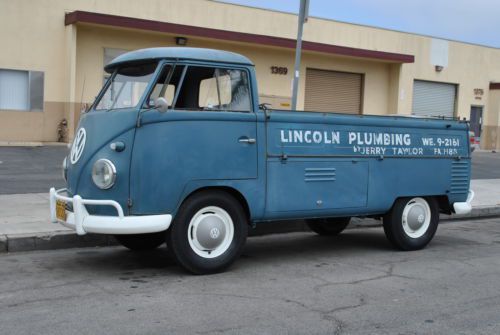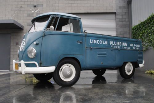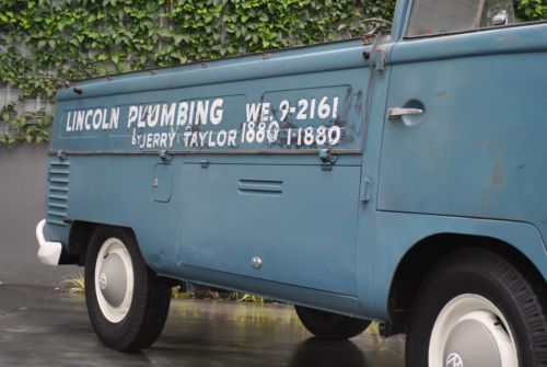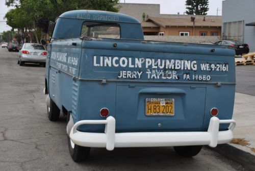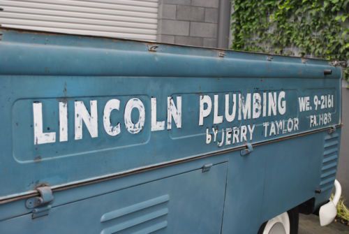 Authentic Lincoln Plumbing "Radio Dispatched" work truck. This truck was purchased in Montebello California and then put in service as a Plumbers truck for Lincoln Plumbing out of Santa Monica California. All of the logos are original, and the phone numbers have the two letter prefixes indicating that they were put on the truck prior to 1965. The WE stands for Webster which was the prefix for west L.A. Ca and the Fa for faculty which was the prefix for Gardenia Ca. This is a California truck which runs and drive great. It has a 1600 Dual Port engine with a single Zenith carburetor, good brakes, a good shifting transmission, and 12 Volt electrics.