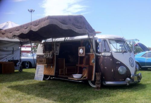 Drive around in something that’s one of a kind! What a Christmas Gift! Anyone can have a shiny paint job and worry about door dings! Get a bus that you can drive daily and has a boat load of character! We take her to shows and everyone swarms the bus! All the other cars wonder why your getting all the attention! My wife wants air conditioning! Happy wife, happy life! So my baby needs to go... Just recently thought through the fact that I’ve got over 40K invested in this bus - Maybe that’s why the wife wants to sell it!!! I’ve had the bus since 2006 and finally got her on the road 3 years ago. Since then, I drive the bus to work about once a week and to car shows - 12,500 miles over the past three years. I had always hoped to stumble on a solid “barn find” that was logo’d - patina'd on the outside, a time capsule on the inside. I've always liked the look of rust, but not the disintegration of real rust. A bus with a surf vibe, tiki touches and a little hot rod, too. Oh yeah, the bus had to be a 1962 - the same year I was born. Good luck finding that in one bus, so I decided to create it myself! The first step was rust repair, so I called a friend of mine, Mike Stafford of MGS Custom Bikes. He specialized in metal fabrication and building custom $100,000 Harleys. The next year was spent stripping, cutting, welding metal throughout the bus. We installed 3” front tubs for good suspension travel, repaired the cut wheel wells, welded in one window, changed the turn signals, custom made a new spare tire well in the rear package area, fabricated fender skirts, added a 1958 engine lid with 3rd brake light. This was followed by a six month trip to Pacific Powder Coating, where a number of parts were powder coated. The bus was also mounted on a rotisserie, where they media blasted underneath and inside the bus. Pacific Powder Coating primed all the areas and shot the bus with bed liner material to seal it from any future rust. When the powder coating was done, the bus was returned to my house for assembly. Added Dynamat sound deadening material throughout the bus. From there the bus was painted and then sanded to give it a patina’d look, faux rust was added and a flat clear coat. Here’s a list of some of the improvements... Mechanical: Every bolt on this bus has been touched - Kaddie Shack 1600cc engine, Rancho freeway flyer trans, Creative Engineering rack-n-pinion steering (raises steering box 2.5" without cutting frame), Wagenswest 4” narrowed 4” dropped spindle front end with Mustang II Disc Brakes, Wagenswest adjustable swing axle plates, 3” tubbed front wheel wells, Type 3 rear brakes, mid-frame mounted electric oil cooler, Wolfgang stainless front & rear safari windows, Vintage Speed muffler and shifter. HID headlights, new wiring harness throughout, plexi-glass vintage visors. All new rubber throughout and camper windows rebuilt. Roof rack is included along with the folding ladder. Interior: Tiki dash knobs, Hawaiian surfboard headliner with Aloha fabric, “Bomber”style bucket seats, “finned” accent engine pieces, fender skirts, traffic light “peek” reflector, “blue dot” turn lens, reproduction surf decals, red jewel antenna, under dash burger tray, and of course a dash mounted 1940’s hula girl. The couch folds out into a double bed. Hidden beverage cooler, sliding cooking shelf, and storage cabinets ready to camp. The custom bamboo door panels are from www.calibamboo.com. The curtains, pillows, and even the Sunbrella awning is included. Yes, that is a 1940 Ford Steering wheel, the bumperettes are from a 1954 Hudson Hornet, and the dash bag is from a Harley-Davidson. The VW emblem on the rear hatch is an original, available only in Canada from 1954-1963. All my accessories go with this bus! - Folding wood picnic table, vintage lantern, vintage stove, vintage area heater, vintage Canada Dry cooler, vintage water jug, vintage suitcase, Hawaiian picnic basket, Tiki statue. I'll even throw in my Vintage Owl longboard if you want it! More photos of the original condition and restoration progress of the bus: http://s362.photobucket.com/user/Surfcanada/library/Surfcanada/Surfcanada%20Bus PLEASE NO TRADES - unless you’ve got a sweet, air conditioned, crate engine, air-ride tin woodie, I’m not interested. The best way to contact me is through email - I’m a teacher by day and can’t answer my phone while I’m at work. The Bus is located in Palmdale, California (93550) just north of Los Angeles. I have the right to end this auction early due to vehicle for sale locally. Don’t let this one slip away! Good luck and happy bidding. |