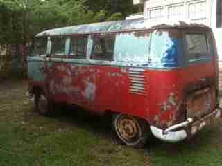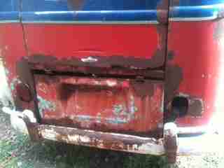 THE VAN IS RUSTY AND NEEDS SOME METAL WORK BUT ITS A AWESOME BUS W AWESOME PATINA ORIGANALLY A TURKIS BUS BUT PAINTED RED AND BLUE IN THE 70'S