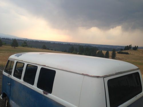 For sale is a 65' Kombi Split Window Bus. This bus started out as a Dove Blue SO42 Westfalia tin top camper. When I got it, the camper kit was long gone, and it had a respray of lighter blue and white which has a nice patina to it. The bus has a good tight running 1776 DP motor, with brand new header and quiet pack muffler. Some highlights: The Good: -Runs, drives, steers, stops. -New brakes (Brand new master cylinder, wheel cylinders, soft lines, and all shoes) -Most metal work is done (inner outer rockers on both sides, cargo and front floor sections, partial p/s dogleg) -Good running 1776 Dual Port motor with rebuilt heads -New starter -Solid & Dry body- original battery tray is in great shape! -Converted to 12 Volt -All new window seals except for door glass. -New Rear Mat -New TMI Front Seat Covers -Rear bay window seat included The Bad: -Transmission drip from one side (needs gasket) -Needs some minor bodywork (corners, nose, p/s wheel well) -Some old bodywork in rear corners. -Electrical needs finishing (I will be working on this until it is sold) -Wiper is 6v and wiper arms are missing -1 side window is cracked, but does not leak. -Missing rear bumper -Deck lid is bent Included but not pictured are 4 hubcaps, the missing engine tin (will be installed),and the blinker switch. Clean title in my name will arrive in 3 weeks. Overseas buyers encouraged! Delivery to the UK or Germany from my house is around $2000-3000 door to door. I can store the bus on my property here after it is paid in full until it is picked up. USA or Overseas buyers- I have a lot of good shippers that can deliver the bus to you no matter where you live! Asking $15,000 USD- no trades please- need the money for another restoration I have waiting. _________________ Serious buyers feel free to text or call 970-775-3437 |
