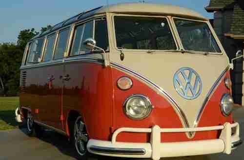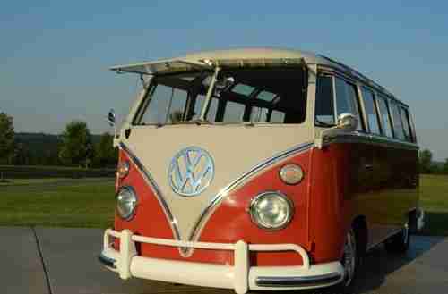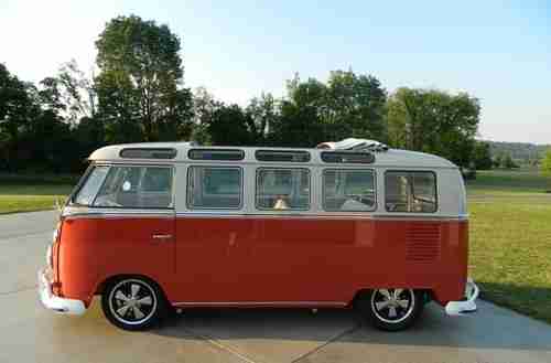 Every nut and bolt restoration to top level through and through. It is a genuine 21 window walk through, not a clone. Sealing wax red and beige grey paint is stunning. All new everything!