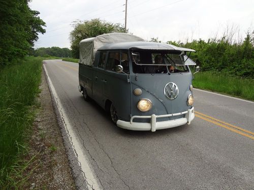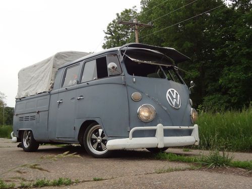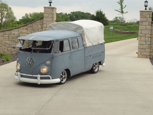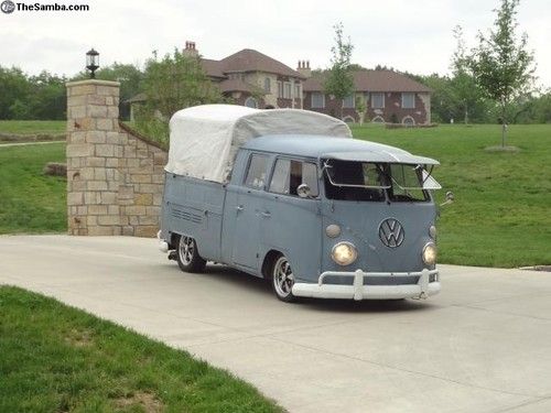 1966 VW Double Cab for sale. This Dove Blue Vw truck came from the NEW YORK AIRPORT. Has a nice 2180cc engine with webber progressive carb. Petronix full flow oil filter system. Optima Battery, Less than 150 miles on the new Pro Street flyer Transmission. 5 inch narrow adjustable beamwith air shocksup front flipped spindles and an offset spring plate in the rear. Raised steering box, American eagle wide 5 fuchs with new tires. Polished wolfgang Safari windows, Vintage 50's Fulton Visor. BIG attention getter. Mike Wolfe From pickers Loved the truck.