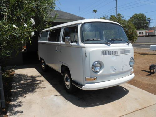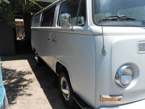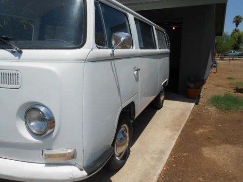 1969 vw bus has rare battery door only seen one other one like it. engine is a 1776 duel port weber custom cam and manifold, empi dual exhaust, electric fuel pump, bosch alternator,oil cooler kit, aluminum cooling valve covers. Bus starts and runs but needs carb rebuild.Brakes need to be bled from sitting, clutch is good, transmission shifts smoothly in all gears, floorboards and undercarriage are rust free. Solid AZ bus.sliding door opens and closes fine, all glass opens and closes fine. Bus was originally red,was repainted in the 90's do not have passenger or middle seats.