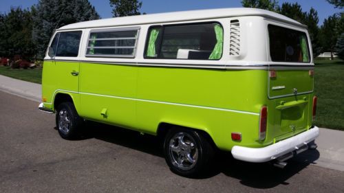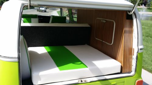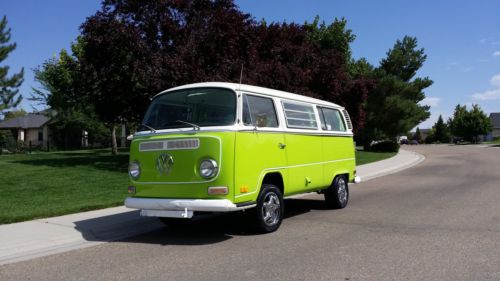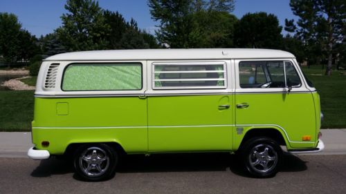 vw camper bus for sale These classic vw Camper Buses are so fun and lovable that owners tend to hang on to them. Even though nice examples rarely come up for sale, this offering should make the waiting worthwhile. This is a 1972 tin top" VW Camper Bus, or "weekender" as they are also called. This bus has all of the features of a normal VW Camper Bus without the pop top. These buses are perfect for a smaller family or couple, and they get slightly better gas mileage than a pop top since they don't have the added wind resistance of a fiberglass pop top. There is no upper canvas to go bad, and these "weekender" versions more easily fit into a standard garage. The green and white paint on this bus looks great and . The paint is new and the bus was painted in the original colors. It goes without saying that the interior received one of the nicest renovations white and green upholstery Sound deadening was used under the carpet for a more peaceful and quite drive. The headliner is original and it looks better than any restored bus out there. The rear seat folds down into a bed, and there are one table that fold away making for a functional and spacious interior. spacious storage areas and seating for many. You will love camping and traveling in this beautiful green and white VW Camper Bus. new paint and custom interior and custom wheels and tires The engine runs and drives great the 4 speed transmission shifts smooth original 46k one owner 100% rust free please call me at 208 407 5872 for more pictures and info....or text me any time payments cashiers check cash or bank wire or bank transfer must be made paid in full 72 hours after sale ends no exceptions you must email me after winning bidder wins On Jul-11-14 at 22:20:20 PDT, seller added the following information: