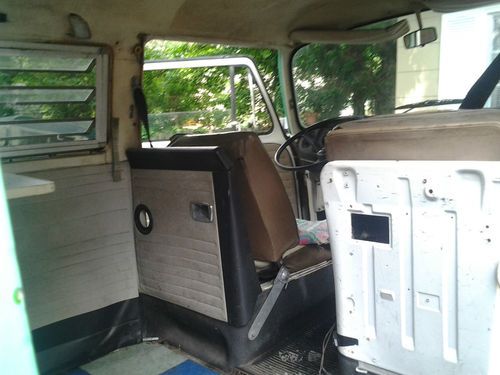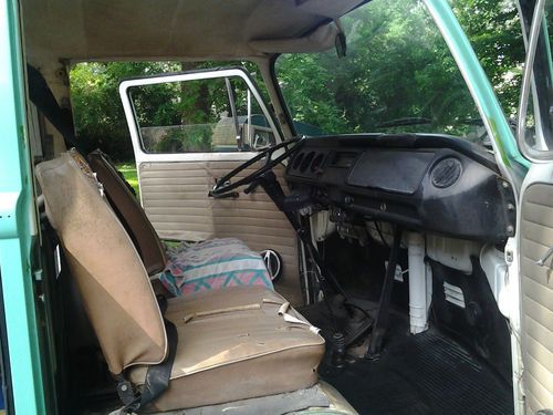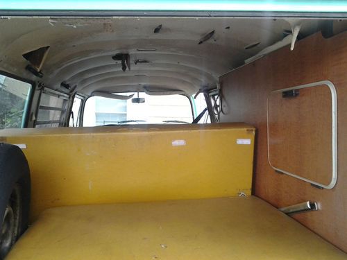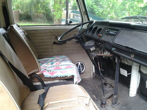 Bus condition is good. Bus is running well. Has been a daily driver for years. Engine in good shape. Body is in good condition overall, there is a dent on the back left corner panel, and a small dent on the bottom of the slider door. There is rust, mostly in underbody and in floorboards (under mats in the front, and along the edges of the floor at the sliding door), but only in small spots on the rest of the body. No back bumper. I have the driver-side side mirror, it is not currently attached. Interior could use some work, the upholstery is torn is several places, both on the seats and the ceiling. Tiny crack in glass on windshield. Only front seats have working seatbelts, but the backseat does have the attachments for seatbelts. Tires in good condition (does not come with the spare tire seen in picture).