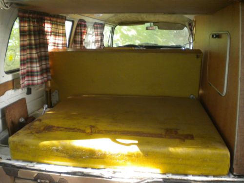 I bought this great Campmobile over 20 years ago and drove it alot. I started to fix it up. It was running great and I repaired all the boken handles and knobs and electical items. Everything worked- even the heat. I moved and things changed and the vehicle has been sitting ever since. I have given up on finding time to restore it. This vehicle was alot of fun and needs some TLC. See pictures. Odometer reads 98736, I have no idea if has already turned over. You will need a flat bed to tow and arrange your own transport. |