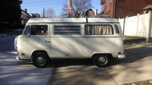 The Volkswagen Campmobile has been kept original as possible, the engine is new and has 1,656 miles on it and runs very well, was it was put in by volksdoctor in Louisville Ky, he is known very well in the area and comes highly recommended,I do have all the paper work for the engine, also there as been 4 new Volkswagen shocks and new tires on the van, the interior is in Excellent Condition for its age.(it does have some minor tears in it) but over all really good, the frame is solid and the body is great, there is a cd player and a small fan on the dash(see in pictures) the heat does work, but is not like a modern water cooled vehicle. the van will easily cruise at 65mph, all break lights, parking lights,dash lights, and interior lights work,the pop up is original and does show its age but does not leak, the sink does work and the cooler is in great shape,there is a wood floor underneath a cut out rug not nailed just sitting on top on the floor the van is close to showroom condition, if new poptop $320, Bus Depot and new bumpers(just small dings from normal wear) there $100 each, please feel free to ask any questions, I will post the best pictures as possible, I have the cot on top and the cot for the front and the original screen for the back they do come with the van, this van sleeps 3 adults and I small child in the front cot, this is an early bus so it only sleeps one on top,hope you enjoy