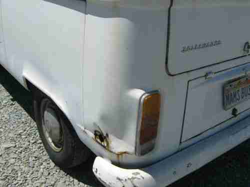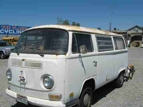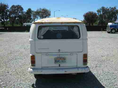 1972 VW BUS WESTFALIA CAMPER ONE OWNER,111K,HAS BEEN SITTING IN GARADGE 17YRS,WAS PARKED WITH LEAVES ON ROOF GUTTERS HAVE SOME RUST MOSTLY SURFACE VERY SOLID BUT HAS A FEW SPOTS WENT THROUGH,MOSTLY SUFACE RUST ON ROOF SOLID,IS IN SAME CONDITION AS WHEN REMOVED FROM GARAGE,DRAINED ALL FUEL FRESH FUEL AND A BATTERY STARTED UP,RUNS GOOD ONCE YOU WARM IT UP,MIGHT NEED CARBS DONE DONT KNOW,DROVE AROUND MY YARD SHIFTS OK,**(BUT TREAT VEHICLE AS A RUNNING RESTORATION)**ALL ORIGINAL,CLEAN CAL TITLE AND NEW LICENSE PLATES,OK PLEASE DONT BID IF YOU HAVE NOT CHECKED INTO TRANSPORT,OR HAVE TO CHECK WITH PARTNER EX TO BUY,ALSO PLEASE DONT BID IF YOU HAVE QUESTIONS*(WILL ANSWER ALL QUESTIONS BEFORE BIDING NO PROBLEM)**AND IF YOU ARE **(BRAND NEW TO EBAY EMAIL ME BEFORE BIDDING)**