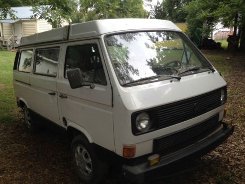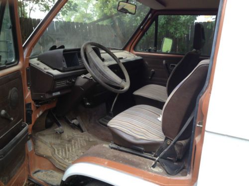 Here for sale is a 1984VW Vanogon Westfalia. This van is not currently running. The previous owner parked it in the garage a little over a year ago due to loss of power and compression. People that know more about these vans than I do tell me that head gasket issues are common to these engines. So common in fact that many owners do a Subaru engine conversion for performance and reliability. This van has been repainted and was originally a copper shade of brown. The cabinets and appliances have been unbolted by the previous owner. I believe the fridge and fold out bed are gone. The top and tent parts are in good usable condition. When I searched Westfalias on here and Craigslist I had no idea they sell for so much money. This one is a project and will need engine work to be drivable. And that is why my reserve is very low and reasonable. I can provide more pics and details upon request. We have not tried to start this van yet. It may start or it may not. Considering that we get 10% Ethanol gas in this part of the country I would assume that the fuel pump is ruined. But I don't know for certain. This is a bill of sale vehicle. In GA vehicles before 1985 do not require titles and the state/DMV will not provide replacements. If you are in another state we will provide a GA bill of sale that it notarized and the paperwork necessary for it to be titled in your state.