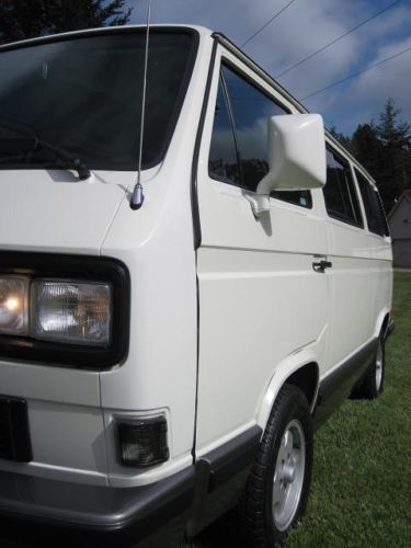 I'm Proud to offer one of the NICEST Original Paint, 1991 Volkswagen Vanagon GL Survivors in the world with only 102k original miles! It took us over a year to find a Vanagon this nice. Congratulations, your search is over, you have found your DREAM VAN! You will be HARD PRESSED to find a nice one! This IS one of the NICEST Vanagons available the World! Many enthusiasts will say this is the best year of the Vanagons, being the last year they made this body style. Its an Automatic so its EASY for anyone to drive. We purchased this all original 1991 Volkswagen Vanagon GL from the original owners estate, they took exceptional care of it. This super exceptional and un-restored original is a great example of just how nice a Volkswagen Van can be with a history of proper care, maintenance, and being garaged. It displays beautifully for being 23-years-young and being garaged since new. No oil leaks, or funny stories. It’s extremely dry with no cancer, the undercarriage will surprise you with how clean and dry it is. This van draws a lot of respect from knowledgeable enthusiasts. Be prepared to get tons of compliments, waves, and many smiles when taking it out. It runs and drives great. Please check the Carfax report / Autocheck report as it has the HIGHEST possible scoring. It has a beautiful exterior and original complete interior with all 3 rows of seats. It’s a 7 passenger van, It has power windows, power mirrors, cruise control, power steering, front air conditioning and rear air conditioning (will need charging) original factory AM-FM cassette player with upgraded Kenwood speakers, folding rear seat that could be used for camping, and more! The number of nice survivors is very low in this condition. Without question, it is certain to be a standout in any serious collector's stable or your family.