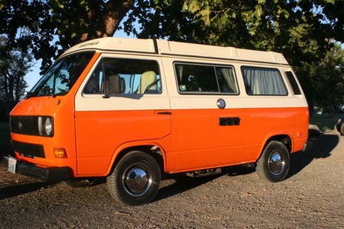 Note: There is a "lien" that shows up on the carfax, this is because a "registered" owner distinct from the "legal" owner is shown on the title, this does not represent a financial debt of any sort or any dispute, it was done as a convenience among family members for reasons regarding insurance and will not be any problem with transfer to new owner. Can send photo of title to verify this. This Westy has been meticulously restored mechanically and cosmetically, see list for particulars. Btw I have no relationship to the abandoned car dealership in the photo, it was included just for artistic (?) purposes. The engine was REPLACED by the previous owner at about 120K with a new engine from Audi, has the sticker on it still. Estimation of miles on the engine is about 40-50K. Runs VERY well, no fluid leaks at all of any type. Personally I like the 1.6L engine better than the later one because it doesn't have problem with broken rods leading to... disaster. Trans shifts and works perfectly, may be original not sure. Steering is manual and there is no AC. Drives like a vanagon should, no wobbles, shakes or rattles, rear engine compartment has been sound deadened, runs cool all cooling components working great, steering tight though original bushings are in place, rack tight. I have received two complements on the van by experienced Vanagon mechanics, owner of Northwesty drove it and said it ran and drove "really nice" (he put a new water pump in it), and Jeremy at Redline Euro Automotive in Richland WA claimed that after I put the new shift parts in it that it shifted better than the job he just did lol. The van needs absolutely nothing for daily use or any trip you would want to take in it.