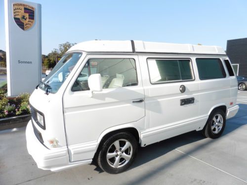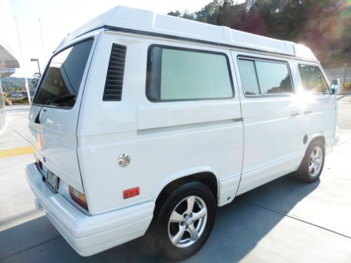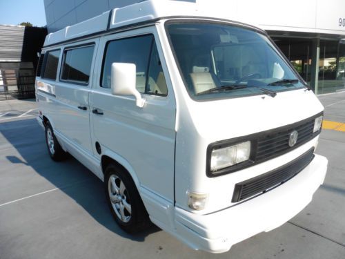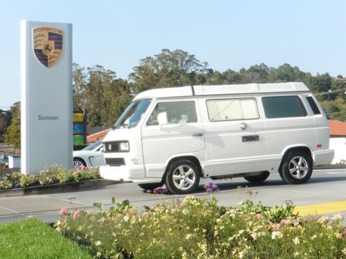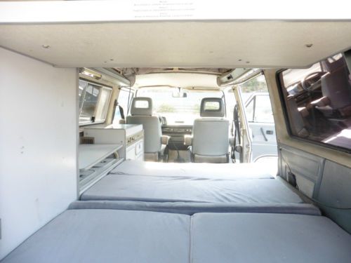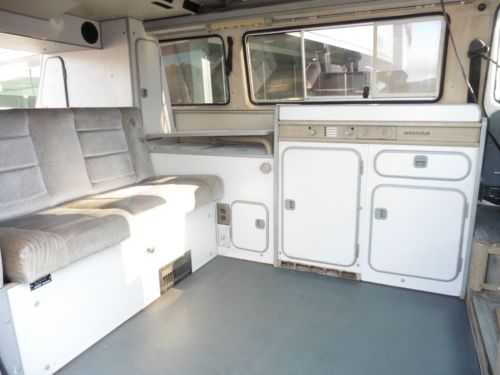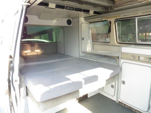 2001 TDI Turbo Diesel Engine (from a 2001 Jetta) 4-Speed manual Transmission 120 Horse Power (est.) 200 Footpound of Torque (est.) Biodiesel compatible Elsbett Kit to run on pure Vegetable Oil (SVO) 30 - 35 Miles per Gallon Solar Roof powers 2 Batteries, Refrigerator, DVD Player 16 Inch Aluminum Wheels with Falken Tyres Tow Hitch (2 Inch) will carry a Dirt Bike Euro Body Kit (Fibre Glass Bumpers and Side Panels) New Paint New Tent Canvas included (from GoWesty.com)* Rebuilt Engine with only 28 K Mi Rebuilt Transmission only 28 K Mi 20 Gallon Tank (replacing Stock Tank) 12 Gallon 2nd Tank for Vegetable Oil Full Westfalia Camper Sleeps 4 - 5 2-Burner Stove Refridgerator with 110V (Plug-in), 12V (off Battery) or Propane Larger Propane Tank: 6 Gallons (instead of 3 Gallon in Stock Tank) Sink with Water Tank, electric Pump and Faucet PLEASE E-MAIL WITH QUESTIONS, AND INCLUDE A VALID PHONE NUMBER WITH BEST TIMES TO CALL. E-MAILS WITHOUT A VALID PHONE NUMBER WILL NOT BE RESPONDED TO. THANK YOU. *New Tent Canvas intended for Self-Installation (new, in Box, grey, Acrylic) or we can refer you to an Installer in San Rafael, CA! |