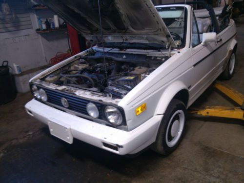 YOUR BIDDING ON A 1991 Volkswagen Cabriolet Convertible 2-Door Runs!!. CONV TOP AS YOU CAN SEE NEEDS REPAIRED OR REPLACED. CAR RUNS AND SHIFTS GOOD. UNDERNEATH LOOKS GOOD. GOOD START TO A VINTAGE CAR REDO |