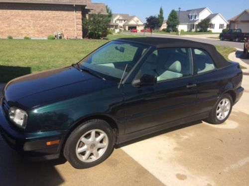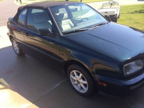 1999 Volkswagen Cabrio convertible , dark green ,Automatic . Aftermarket Sony CD player installed but the original is in the trunk. Top is one year old along with the exhaust . We use the car to pull behind our RV on a dolly . Previous owner did a complete paint job . Not a professional job but looks good . The car drives out great with no issues , tires are decent , interior is decent . Keep in mind it is a 1999. If you want a fun little convertible to just cruise around in , without going broke , then this is the one for you . If you want a show car then better keep looking . It has your typical oil leaks but with 200k plus miles it deserves to leak a little . The car runs great !!!
