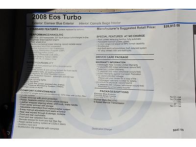 2008 vw eos lux turbo 2l i4 16v automatic front wheel drive convertible premium(US $17,991.00)