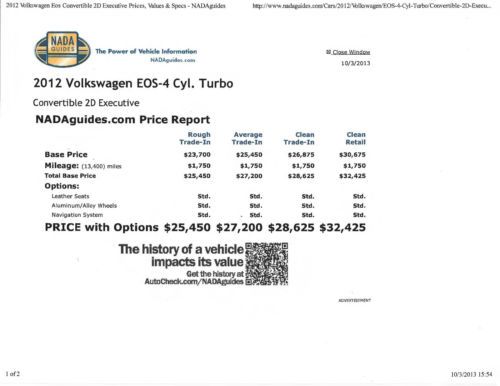 2012 eos executive turbo heated seats one owner very clean