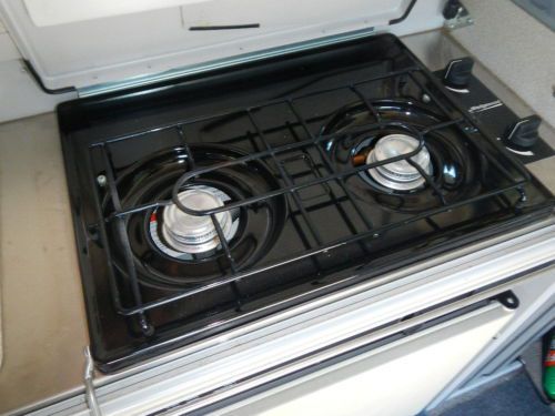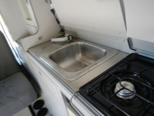 and battery charger, GFI Protected Circuits 12 Gal Fresh Water tank, 8 Gal Gray Water Tank, LP Gas Tank, with the black plastic cover ( most vans have lost the cover ) AC/DC/LP refrig (2 Cu Ft.), 2 Burner LP Gas Stove—works great Stainless Steel Sink