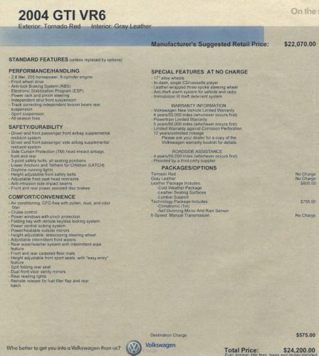 2004 Gti Vr6 Hatchback, 2.8l 200 Hp, 6-speed Manual, Low Mileage on 2040-cars