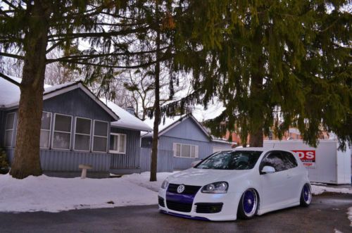 Here is a totally one of a kind GTI with low miles. This car garners attention wherever it goes, and has had a ton of online exposure as well. This car means a lot to me and the only reason I'm selling is because I have too many cars as it is. Lets start out with the basics: it has 46,000 miles on it with no mechanical issues present. The car is far from stock, however mostly oem parts were used in the build. The exterior is in 9.9/10 condition with a lot of tasteful, subtle mods: the front end was lightly damaged by a tire tread on the highway, which coerced me into buying a Jetta Wolfsburg front upper and lower center grille ($300) with r-line fog grilles ($120) housing projector foglights ($120), the front bumper is a stock gti bumper with the ugly washer covers and sidemarkers professionally shaved ($600-$800) and an oem Votex Lip installed ($300). The fenders aren't mangled like many lowered cars are, and neither are the quarters. The stock body has ugly rubstrips running down the sides, with something like 18 holes to hold them in. These strips have been shaved, filled, and welded like they were never there. The sideskirts are votex sideskirts ($200), and the rear bumper is an oem r32 unit ($800+paint) with a rare shaved lower valence ($300). The entire car has been resprayed in a custom pearl white (looks hyper white in most light, but put it under a parking lot light or in a parking garage and the blue really comes out (my favorite feature on the car) The taillights are oem euro led's ($550). The car will come on a set of rare BBS Impuls in MINT condition, and sized at 18x8/9et38 with good tires ($2,500 before tires). Also included are the factory huffs with Michelin Pilot Aplin 2/3s with tons of tread left. The car is sitting on a top of the line airride system, no cheap parts anywhere in this system. It has airlift slam series front bags, with ss5 rears mounted in d-cups. The management is accuair e-level (the best) with a cleanly installed rocker switch to control it, with dual 444c compressors, 3/8 inch line, dual watertraps (the airride kit without the trunk setup is $4000)The trunk has a completely custom dual tank hardline setup painted to match the exterior of the car ($1500 just for the parts and hardware alone). Inside you will find a semting touchscreen navigation headunit with wiring that needs to be checked since it produces a lot of static, a complete oem leather seat swap, a euro dash cubby euro lower dash cubby, euro switch, full led lighting, (the sub and amp will not be included, but the wiring will be left in. Move on to the engine bay and you will find a neuspeed pflo intake, an external oil catch can, oem rev D diverter valve, APR stage one ecu, full mount kit including engine, trans, and dogbone mounts to make the car more dynamic ($500 for the mounts). Any issues the car has are extremely minor, and like I said this is a well known and appreciated car in Chicago, with a bit of a following. I was going to part it out but decided that someone on here might be able to get as much enjoyment out of it that I did. Its a great driver with an almost perfect exterior, and an almost perfect interior (no blemishes or tears anywear).