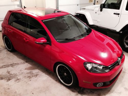 2011 VW Golf TDI 4dr 6sp MT Tornado Red price is set at market value for the base car plus half of the parts only cost. If you want the fastest TDI out there with better handling than a GTI, this is it. 60+ MPG Highway, 40+ around town. I have several cars, and this has been one of my favorites: unstoppable torque, great handling, and the best gas mileage of anything I have ever owned. But its time to make room. There isn’t anything I would change about this car. You can spend $ 35k+ to build your own, or take this one home for a lot less. The new common rail 2.0 is a great engine, but the stock intake and exhaust chokes these vehicles robbing them of power and efficiency. So the week after I took delivery of it, I worked with Performance Diesel and Malone tuning to install the best breathing and best programmed system available. Malone’s website lists 184 bhp and 333 lb-ft torque, and I don’t doubt it for a second. In fact, the numbers for this car are probably better because of the custom stainless exhaust. The fuel economy is better than stock by over 20% city and highway. The sound is perfect. Not loud, but throaty when full throttle. And you can hear the turbo whistle a little at idle. Its been a great daily driver and family trip car, no complaints whatsoever. The tucked away hitch works great for a bicycle rack. The other great thing about this car is the suspension and handling. It has a full KWV2 coil-over and sway bar setup from ECS Tuning, so it handles better than any GTI could ever dream of – and gets 2X the gas mileage. The height shown in the pictures is at the lowest setting possible, it can be adjusted about 3” higher if you want, and the shocks are adjustable too. I have like new Goodyear Ultra Grip Ice snow tires mounted on 16” black steelies if you want them for $ 450. All stock parts are included if you want to return the car to its original configuration. Waxed and in a heated garage with owners manual, service history, both keys, etc. Clear title. Dealer serviced with synthetic oil only, suspension adjustment and alignment by independent VW shop. Standard factory items: Satellite radio, Bluetooth, heated seats, sunroof, rubber TDI mats, etc. Additions