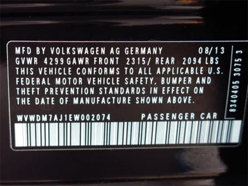 VIN (Vehicle Identification Number): WVWDM7AJ1EW002074