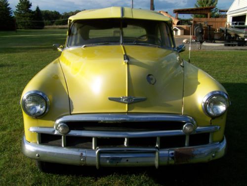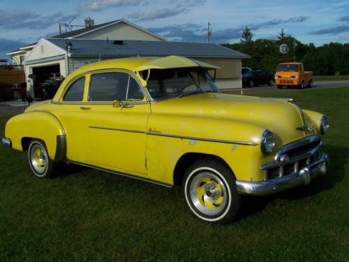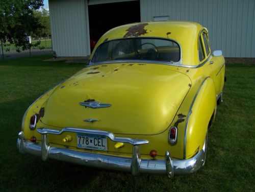 This a 1949 chevrolet two door with no engine or trans.Thew interior has been done recently as you can see by the pictures the body is solid . There is fender skirts ,radiator, and various parts in the trunk. This car belongs to my son if you have any questions , you can contact him at cell #320 760 5538. Thank You for your interest If you are going to bid make sure you have the money to pay for it. The car also has air shocks and updated rearend windows has been replaced.