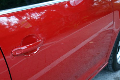 The title is in hand and ready to be transferred. The car is Red with black leather and grey interior. All leatherette and carpeting is in great condition. All windows are tinted. Automatic sunroof MFD with steering wheel controls for stereo and convenience controls 6-CD MP3 changer radio unit with iPod dock in center armrest and SIRIUS satellite radio receiver Heated front seats AC power outlet in back seat Power adjusting drivers seat with adjustable lumbar support in both front seats Air conditioned glove box Tire pressure sensors Tires were replaced with Continentals 2.5 years ago but still have plenty of tread life left on them Comes with 2 electronic keys Battery replaced last month All recalls up to date A/C compressor was replaced last year The paint is in good condition with a few small chips on the doors and hood. There are a few small door dings from parking lots. The car comes with a factory red paint pen and clear coat pen for covering chips. The car was involved in a hit and run a while ago and the rear driver side door panel was lightly scraped by the offender leaving a few small dents. It is generally only really noticeable in certain lights. There are some scrapes on the bottom corners of the air dam under the bumper. Feel free to send me a message with any questions about the car. Local buyers are welcome to come preview the car. Arrangements can be made to pick up the winning bidder from a nearby airport or train station. |