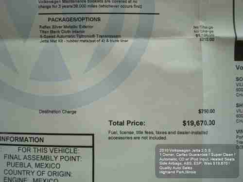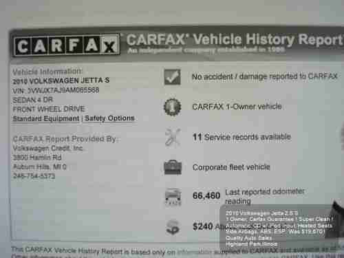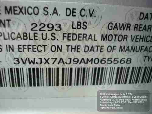 2010 Volkswagen Jetta 2.5 Auto Cd Heated Seats 1 Owner Carfax Side Airbags Nice on 2040-cars