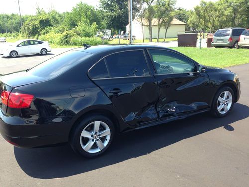 2012 Volkswagen Jetta TDI, only 9,838 one owner locally owned, Clean Title in hand. Crashed by customer~! This VW Runs and Drives Perfect! Full Factory Bumper to Bumper Warranty from Volkswagen. Car is loaded with Touch Screen Satellite Radio, Blue Tooth, Glass Roof, Tinted Windows, Heated Seats, Keyless Entry, Full Books, Rubber VW TDI Floor Mats, Rear Trunk Spoiler, VW Trunk Cargo Cover also Included. No mechanical or any other damage other than the side damage. Passenger seat and head side air bags blown, with need those two bags along with doors, rocker and post repair. Should be an easy fix for someone!