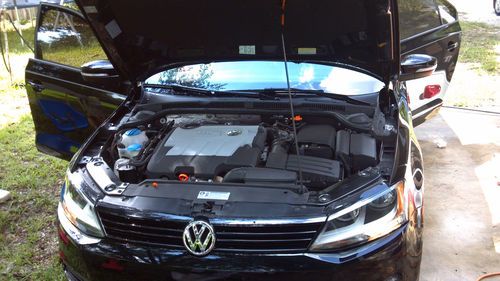 I am selling my BLACK ON BLACK 2012 TDI JETTA, it currently has 26,940 miles but is still being driven a few miles before sale for test drives. This car is like brand new without the price tag. Black leather heated seats, 6 speed auto DSG transmission, Fender audio system from the factory (sounds awesome), This car gets about 38MPG in town and 45MPG on Highway, also is very peppy for a 4 cylinder turbo diesel. It has windows tinted at 20% all the way around which really made the car look great. My wife and I bought 2 of these cars brand new last march and no longer need two. This car is still under factory warranty until 60k, it has been maintained by only the local VW dealer. The car has 2 new front tires which were replaced by the road hazard due to nails in the side wall. There are some scratches on the paint, most are very minor, the worst one is about 6" long (see pictures) all the rest are small and could be buffed out. If you have any questions feel free to ask...