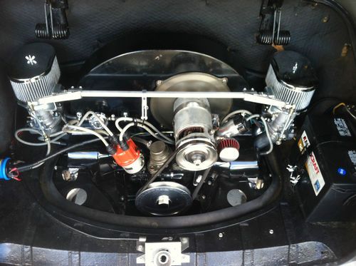 1915cc engine built by West Coast Core with less than 100 miles on it. 110 cam, stock heads, new dual Empi HPMX 40s, new tins, new blue coil, new battery, new A1 ceramic coated 1 5/8" exhaust with muffler, local rebuilt transaxle with less than 100 miles on it, 80% tread on tires, retro sound stereo with rockford amp speakers.
