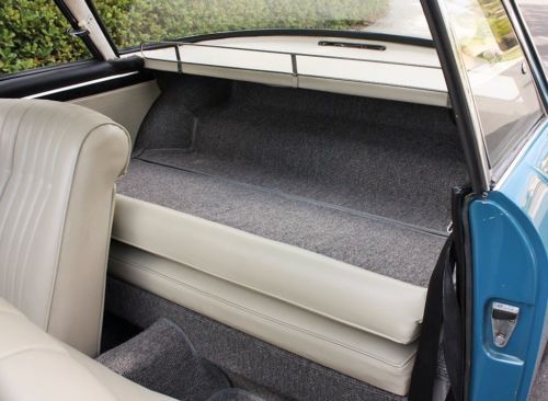 & German squareweave carpet with matching cloth binding. All black pads are in excellent condition. Outside mirror glass was replaced. Rear wood-slat decklid luggage rack is new.